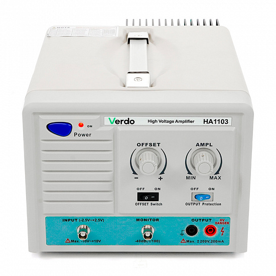 VERDO HA1103 — компактный и легкий высоковольтный усилитель, широко применяемый в испытательной и измерительной технике. Устройство отличается небольшими габаритами, малым весом и простотой в эксплуатации.