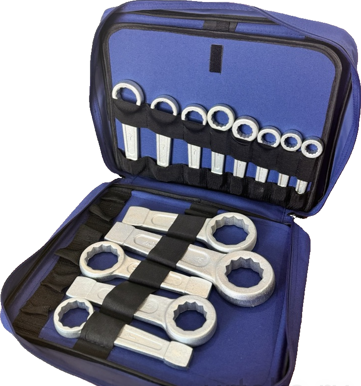 Набор ключей гаечных ударных UT-13 создан для для монтажа резьбовых соединений при ремонте и обслуживании машин, станков и оборудования промышленных предприятий и автомобилей. Ударные ключи от 17 до 55 мм удобно упакованы в эргономичную инструментальную сумку с ремнем для переноски, в которую вы сможете добавить свои ключи и инструмент.
