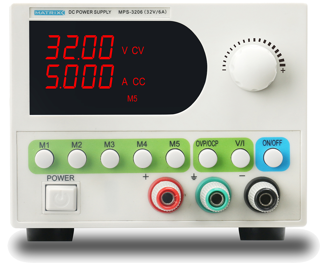 Matrix MPS-3206 – это качественный регулируемый источник питания постоянного тока с высокой стабильностью. Данный источник питания имеет светодиодный четырехразрядный дисплей для напряжения и тока, защиту от перенапряжения (OVP), защиту от перегрузки по току (OCP), защиту от перегрева (OTP). Порог для OVP/OCP можно установить согласно потребности пользователя. Matrix MPS-3206 – прекрасный прибор для нужд образования, производства, обслуживания и ремонта оборудования и т.п.