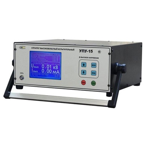 Аппарат высоковольтный испытательный УПУ-15 ориентирован на генерирование напряжения переменного тока синусоидальной формы частотой 50 Гц, напряжения постоянного тока, а также измерение напряжения и силы переменного и постоянного токов при проведении испытаний и диагностировании изоляции силовых кабелей, ограничителей перенапряжения, твердых диэлектриков, средств защиты и других объектов и материалов, для испытаний которых требуется высокое напряжение. Кроме того, совместно с ванной испытательной АВИЦ-20П, аппарат позволяет в автоматическом режиме проводить испытание средств защиты, используемых в электроустановках.